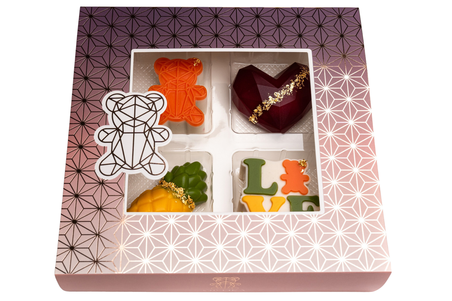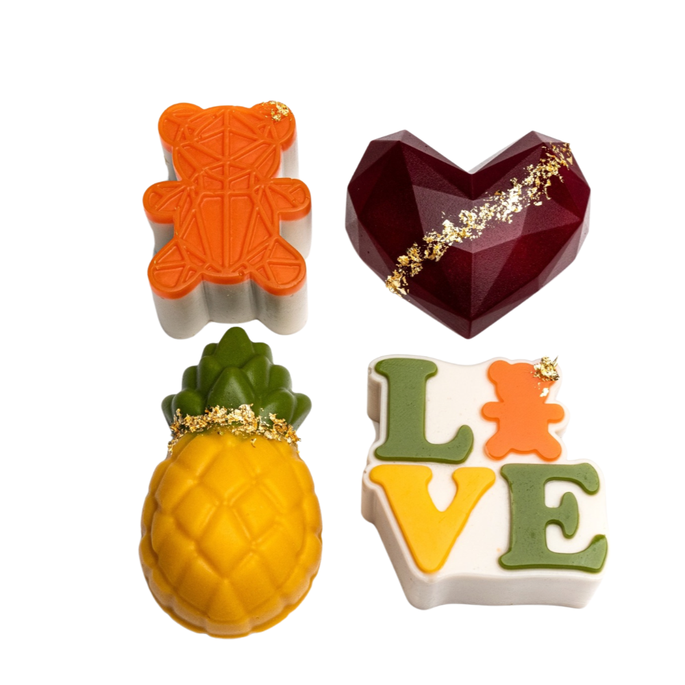 The Chef’s Favorite Cakes set offers a curated selection of our most beloved designs. This exclusive assortment includes four uniquely crafted cakes, each made with human-grade, all-natural ingredients and finished with delicate vegetable juice glazes.